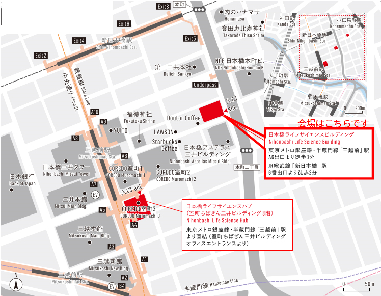 〒103-0023 東京都中央区日本橋本町2-3-11 日本橋ライフサイエンスビルディング10階会議室 <交通機関> |